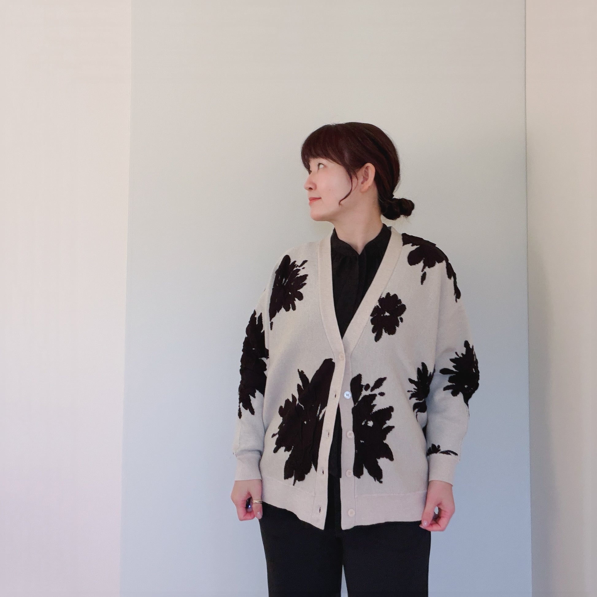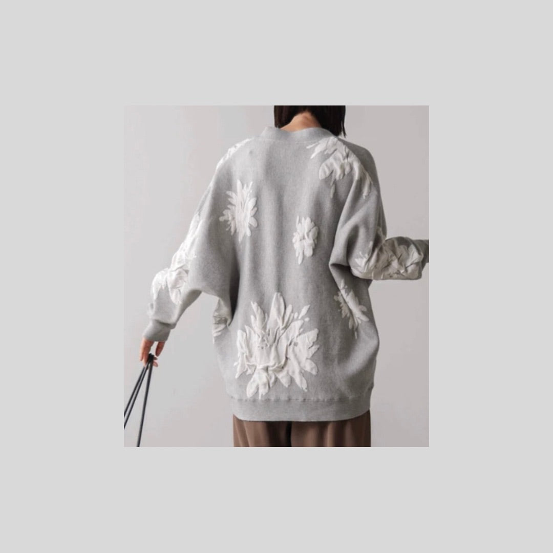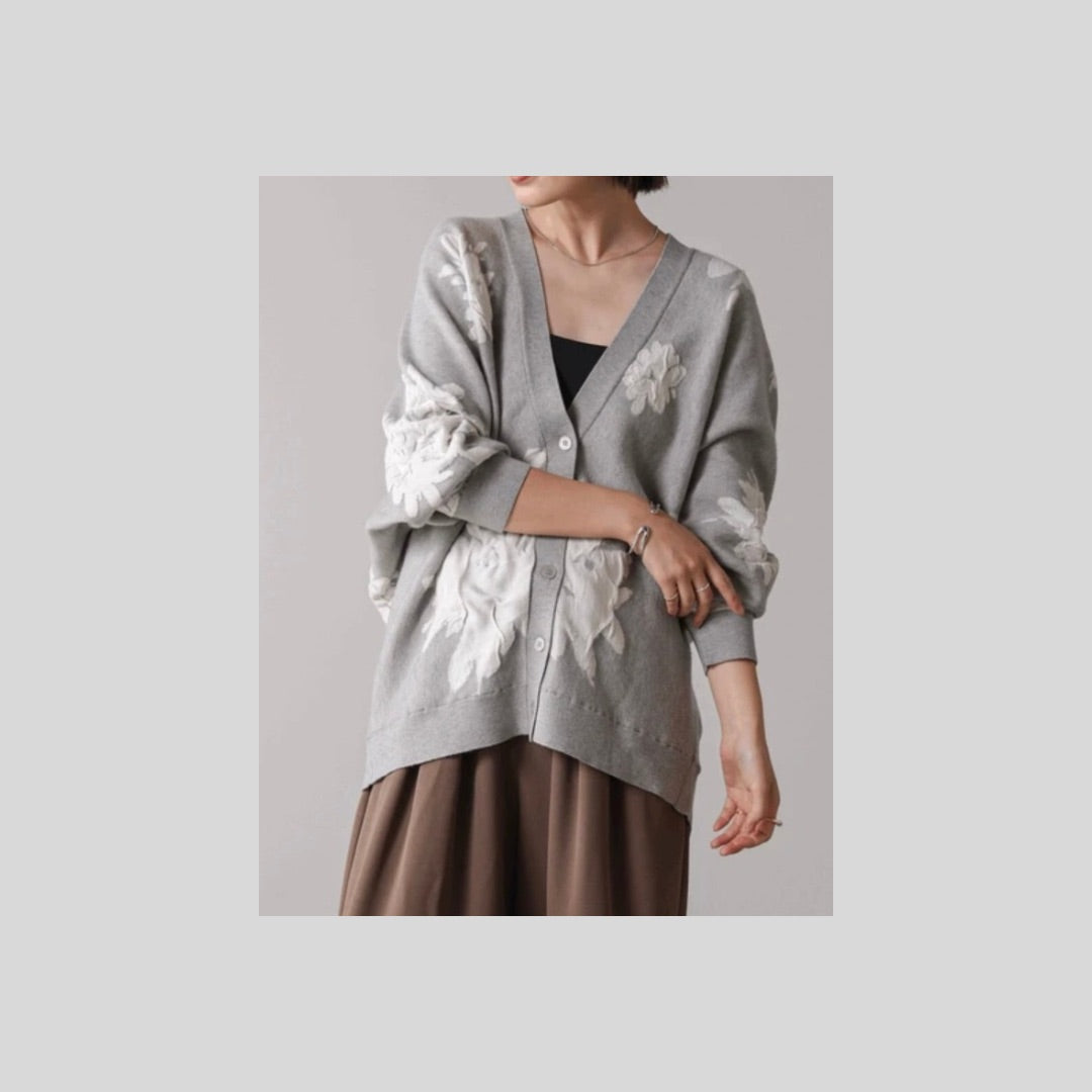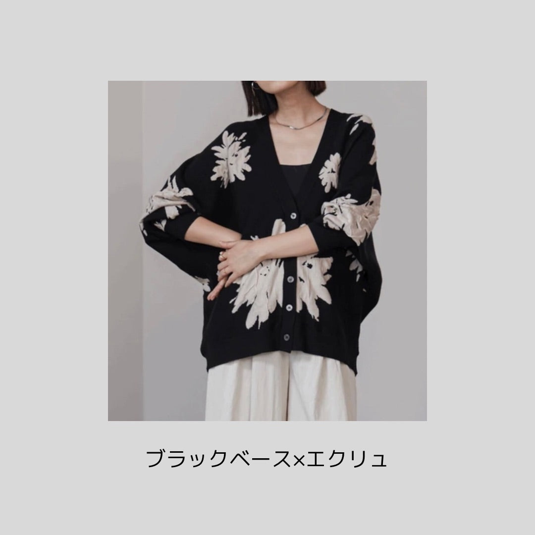 【再々入荷】立体感あるジャガードフラワーカーディガン