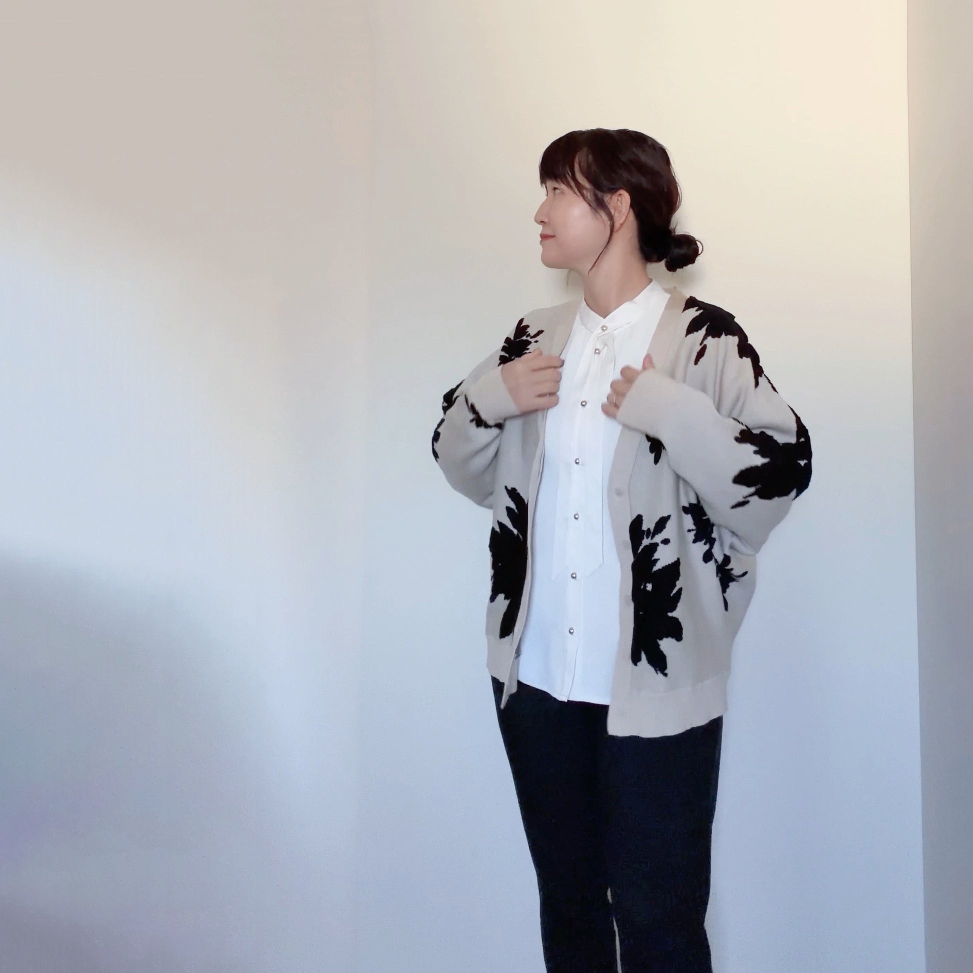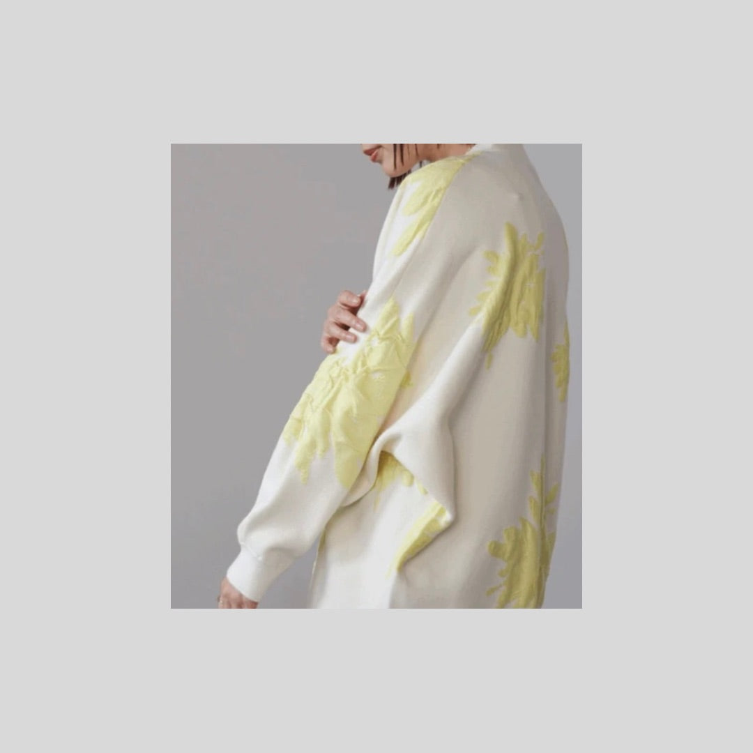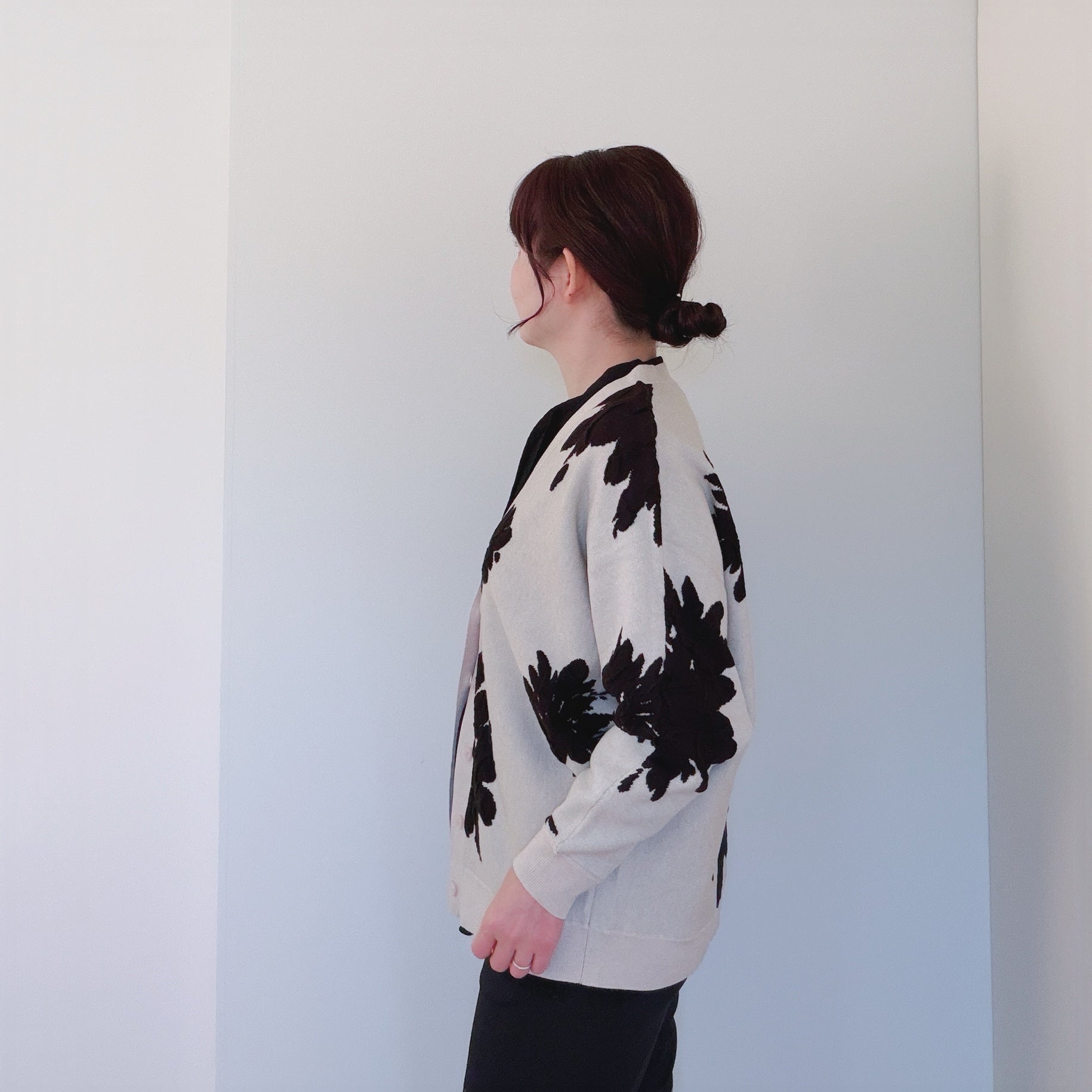 【再々入荷】立体感あるジャガードフラワーカーディガン