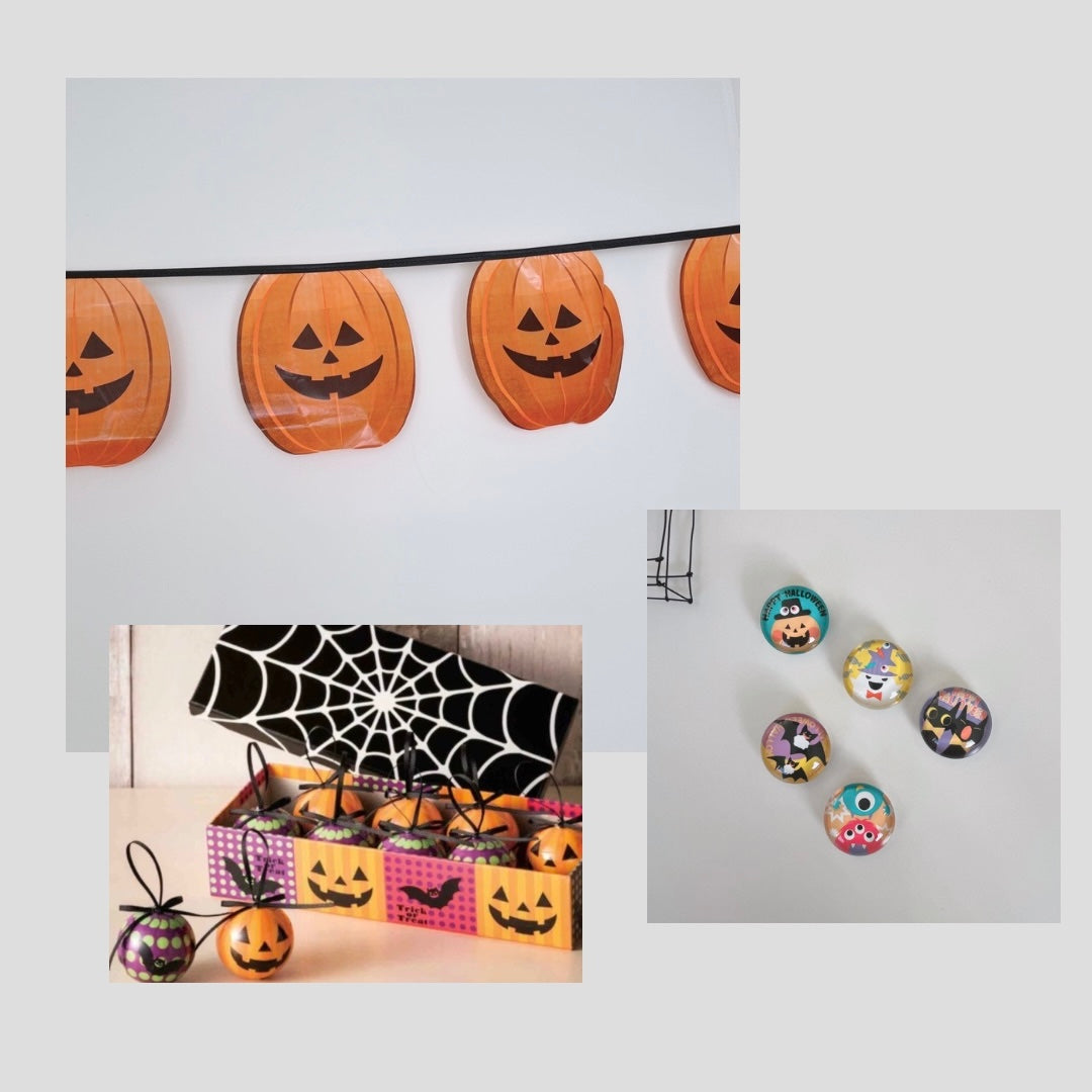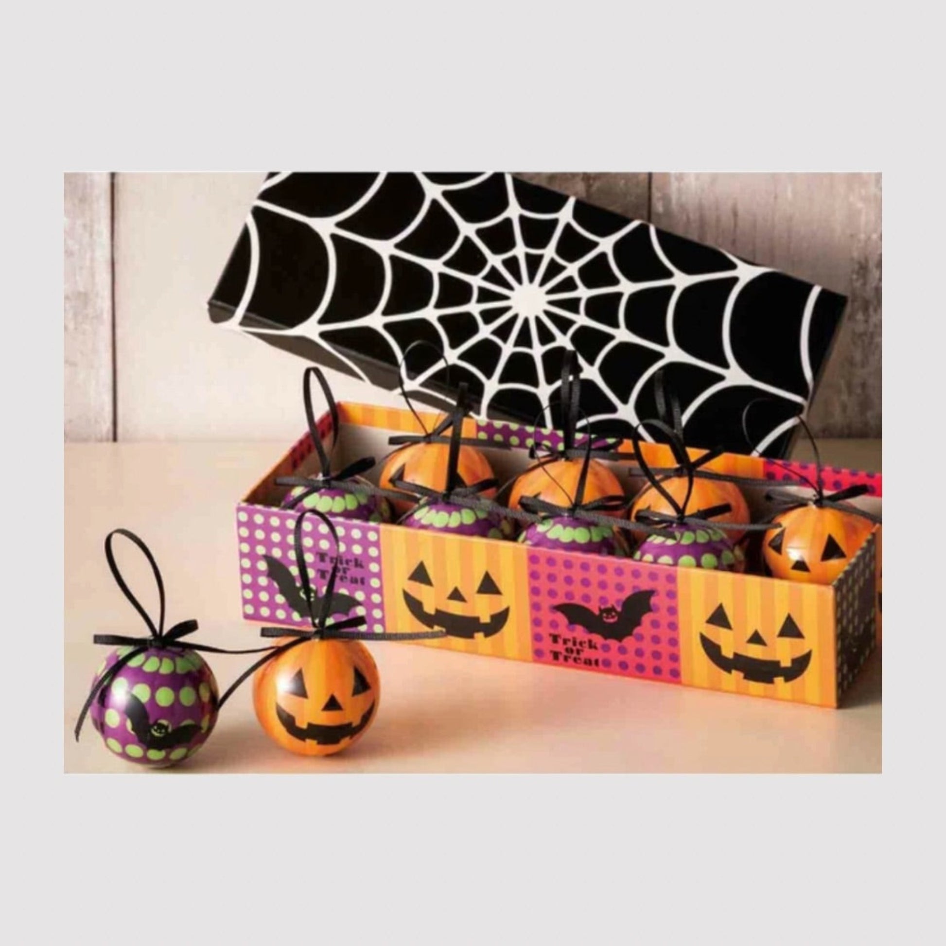ボール状のかわいいカボチャくんとこうもりちゃんのが全部で10個入っています。リボンみたいになっているのもキュートすぎるー
