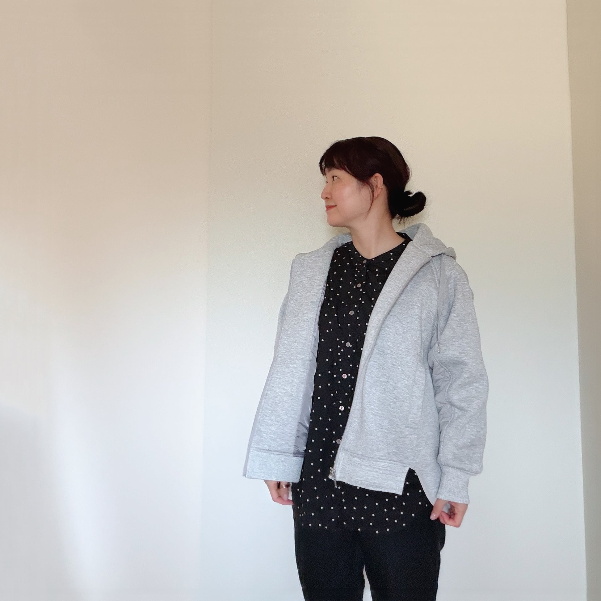 だからこういう、パーカー着てます的に見えるアウターは重宝するんですよね。