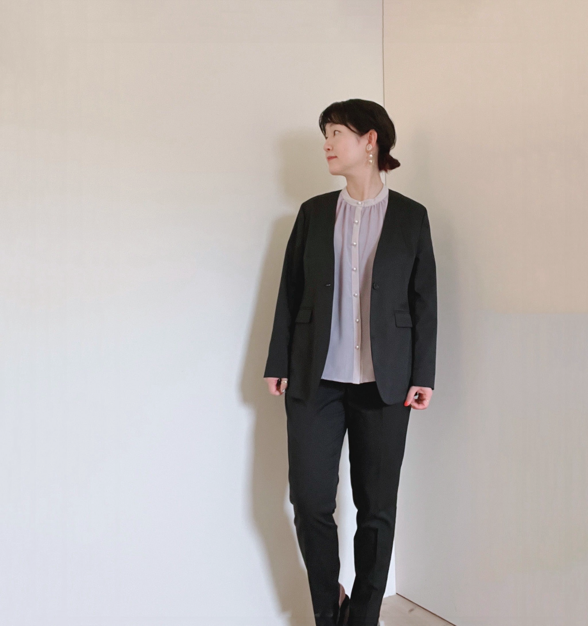 「ガンガンお洗濯、シワ気にならないのに高見えストレートパンツ」合わせです。
