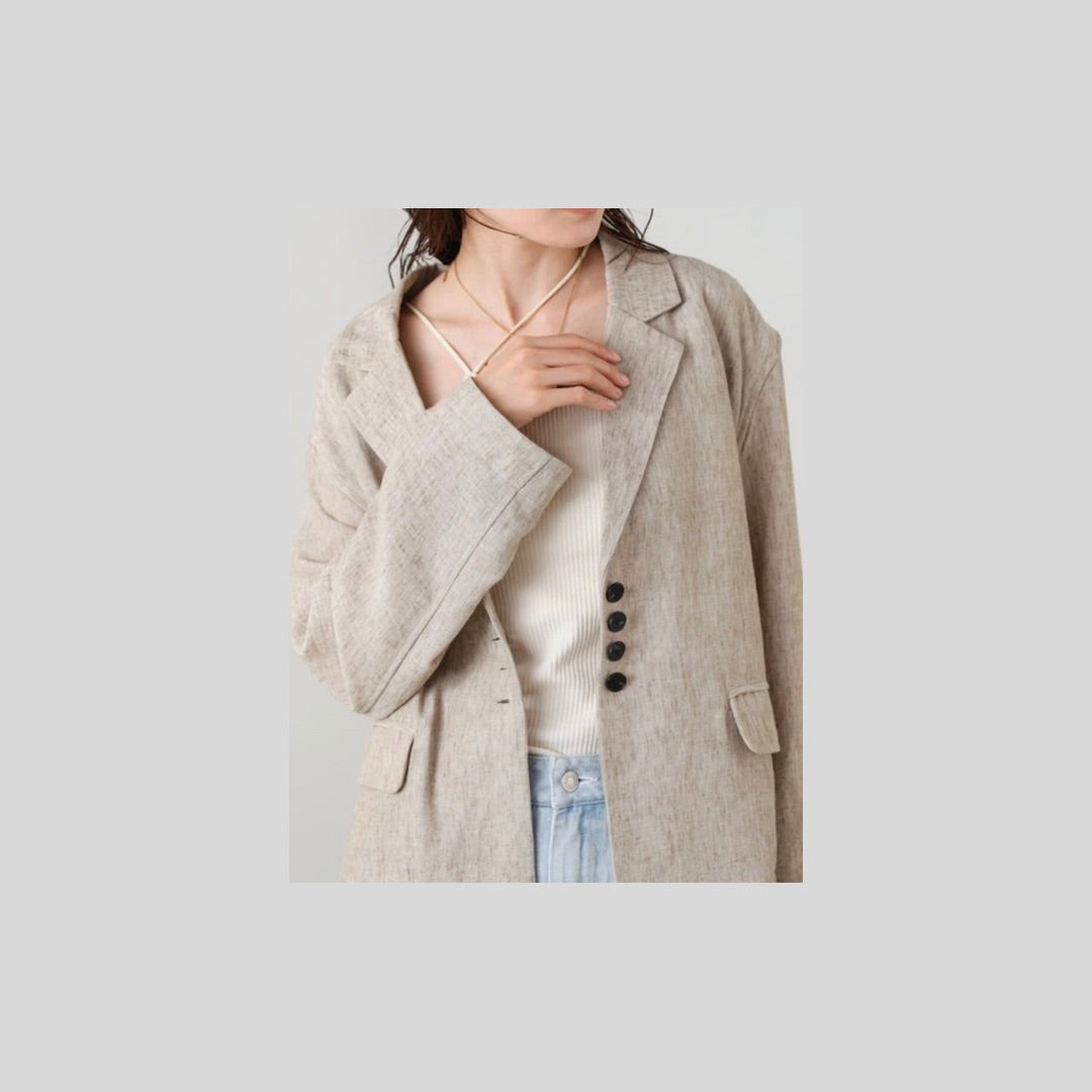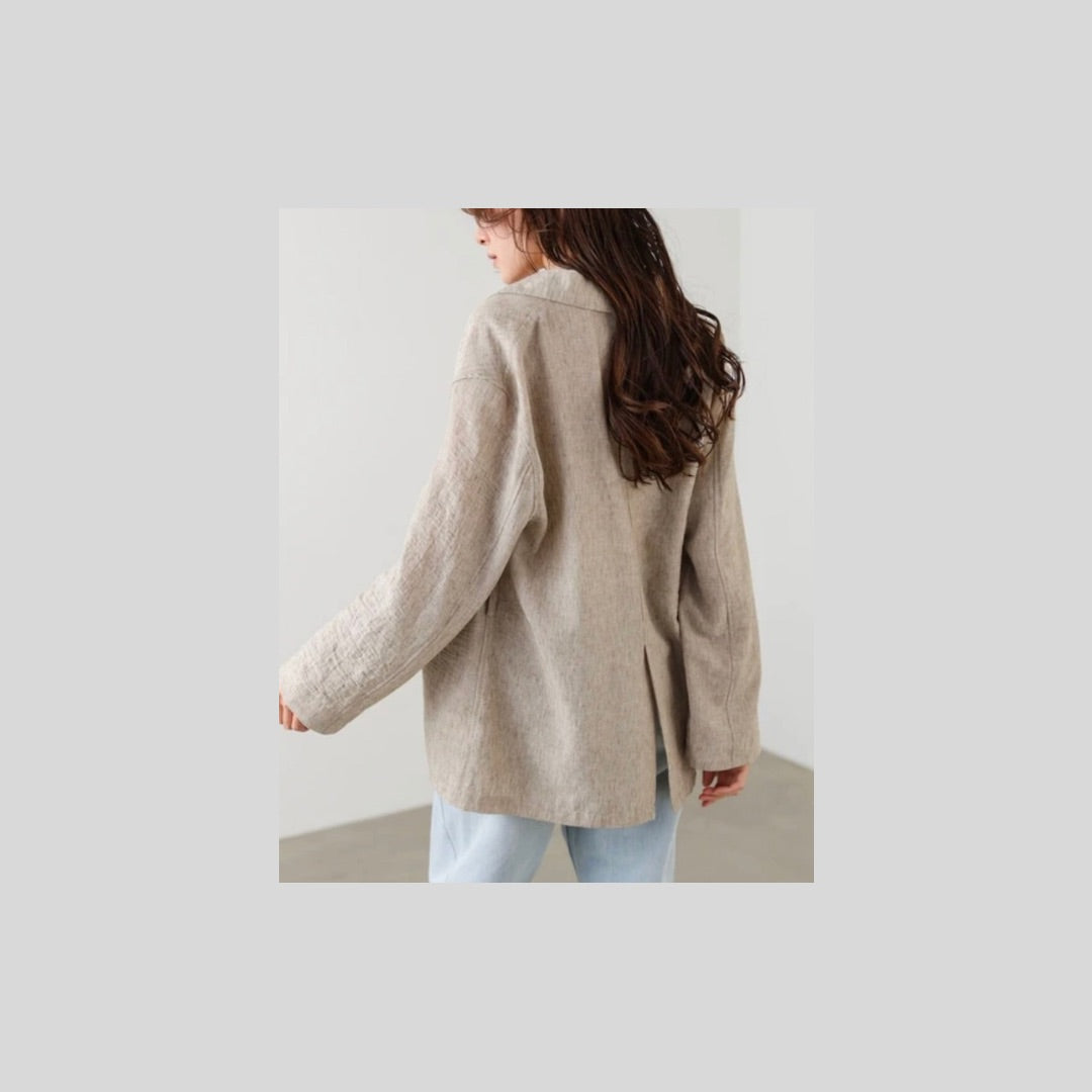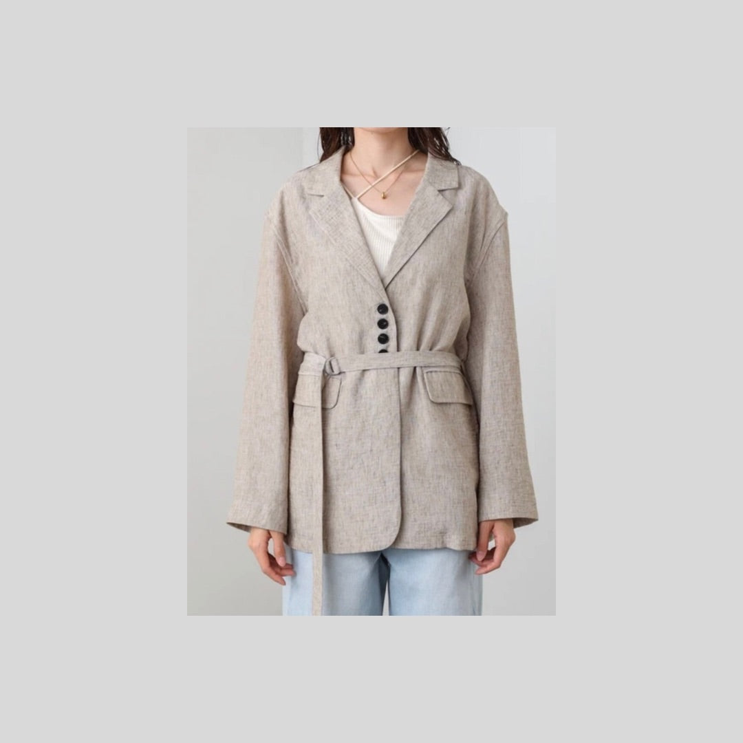 リネンライクな風合いが魅力の、ベルト付きジャケット。