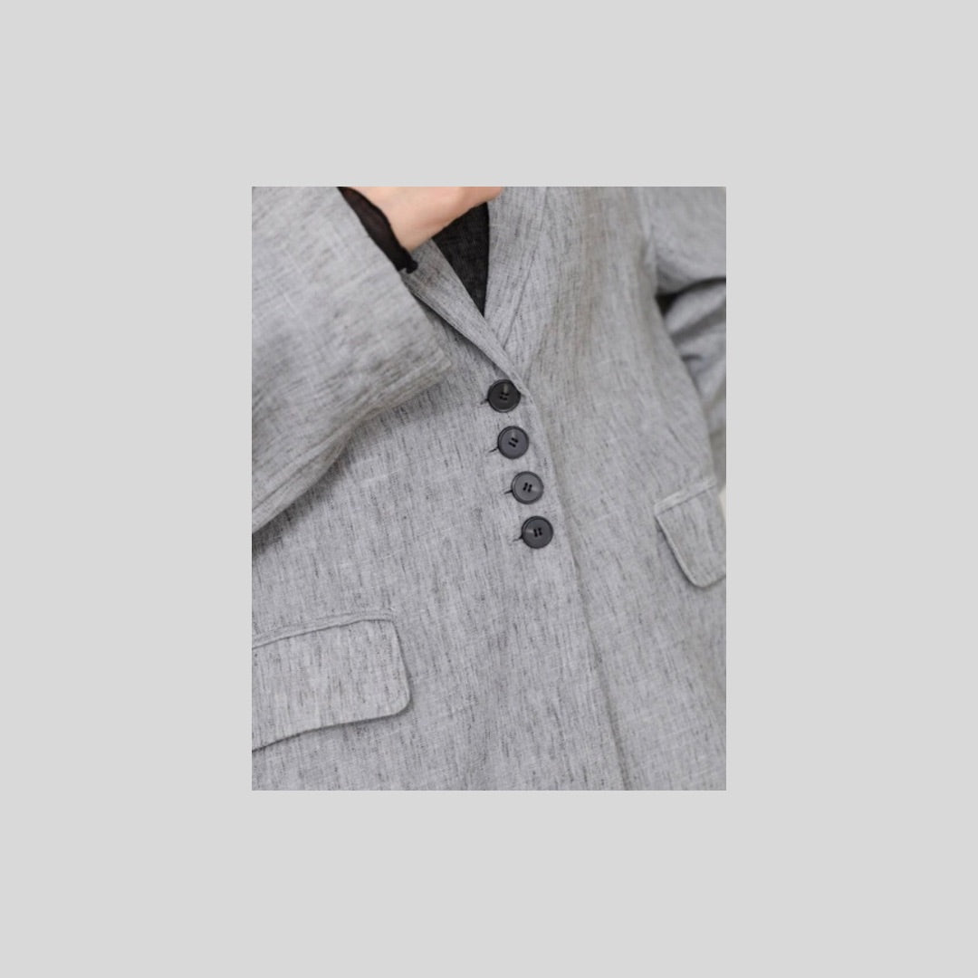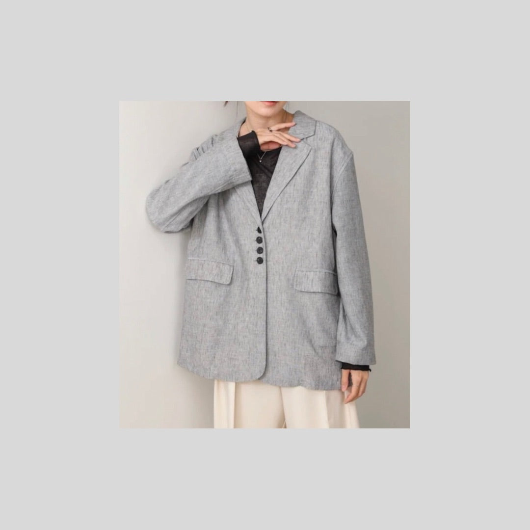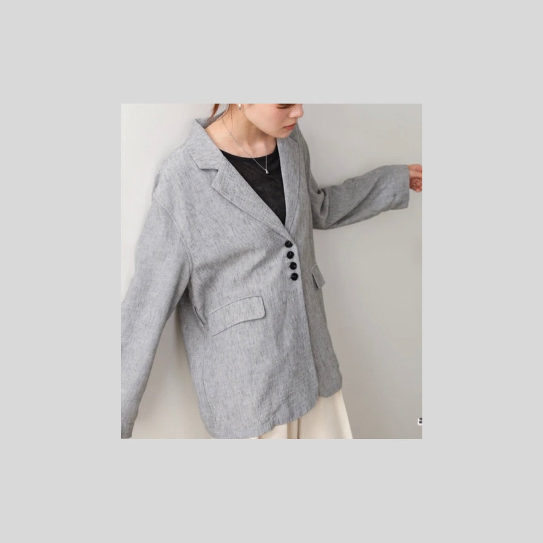 リネンライクな風合いが魅力の、ベルト付きジャケット。