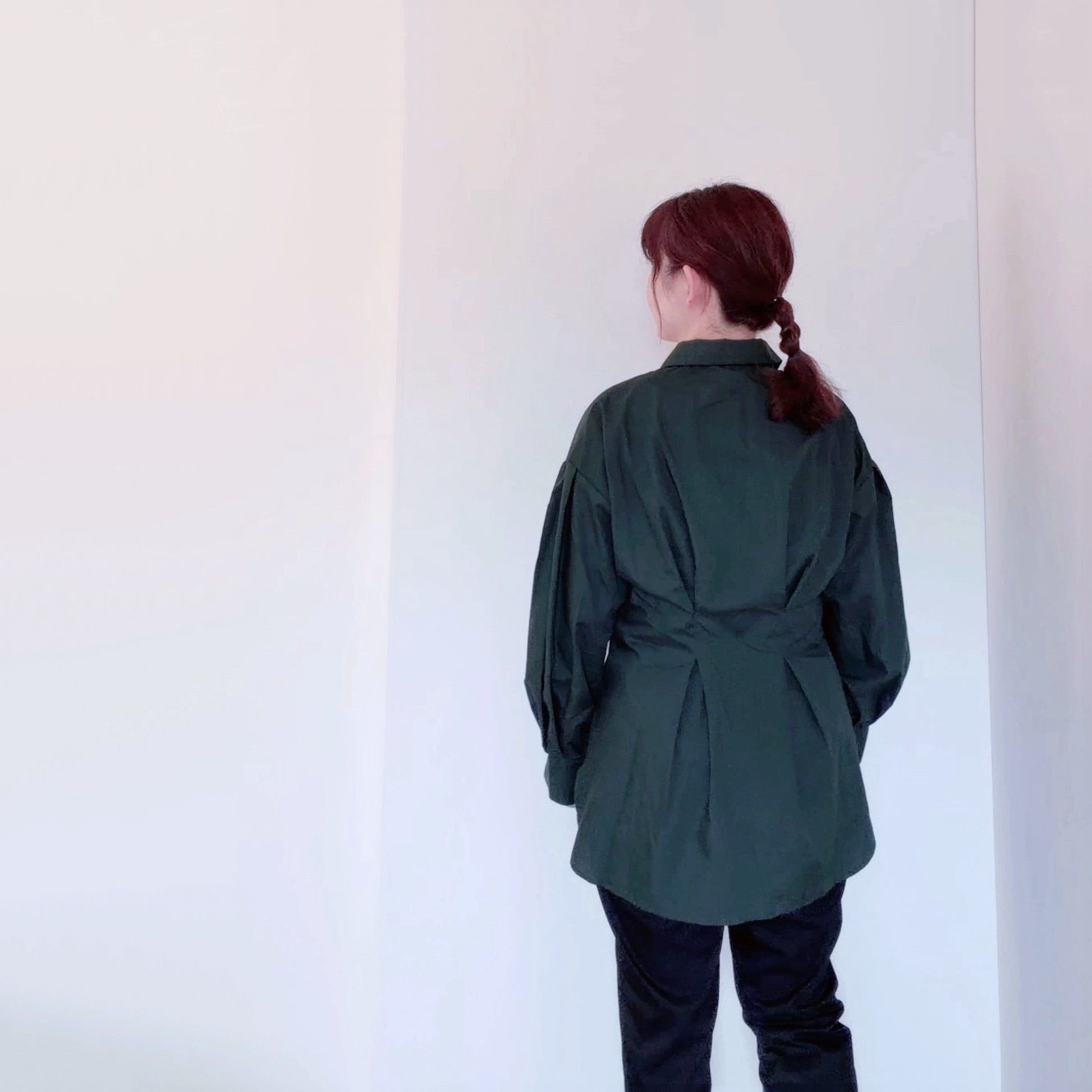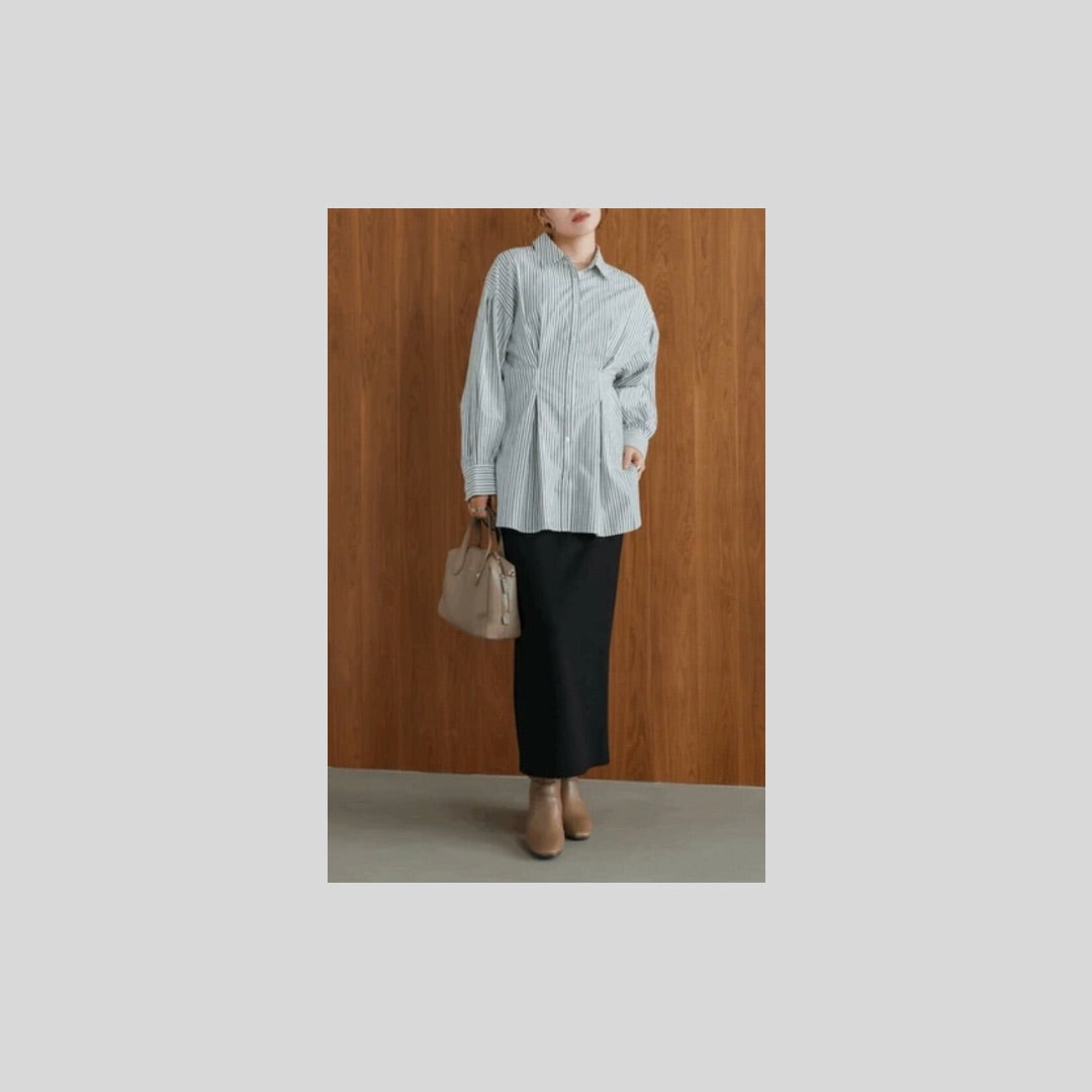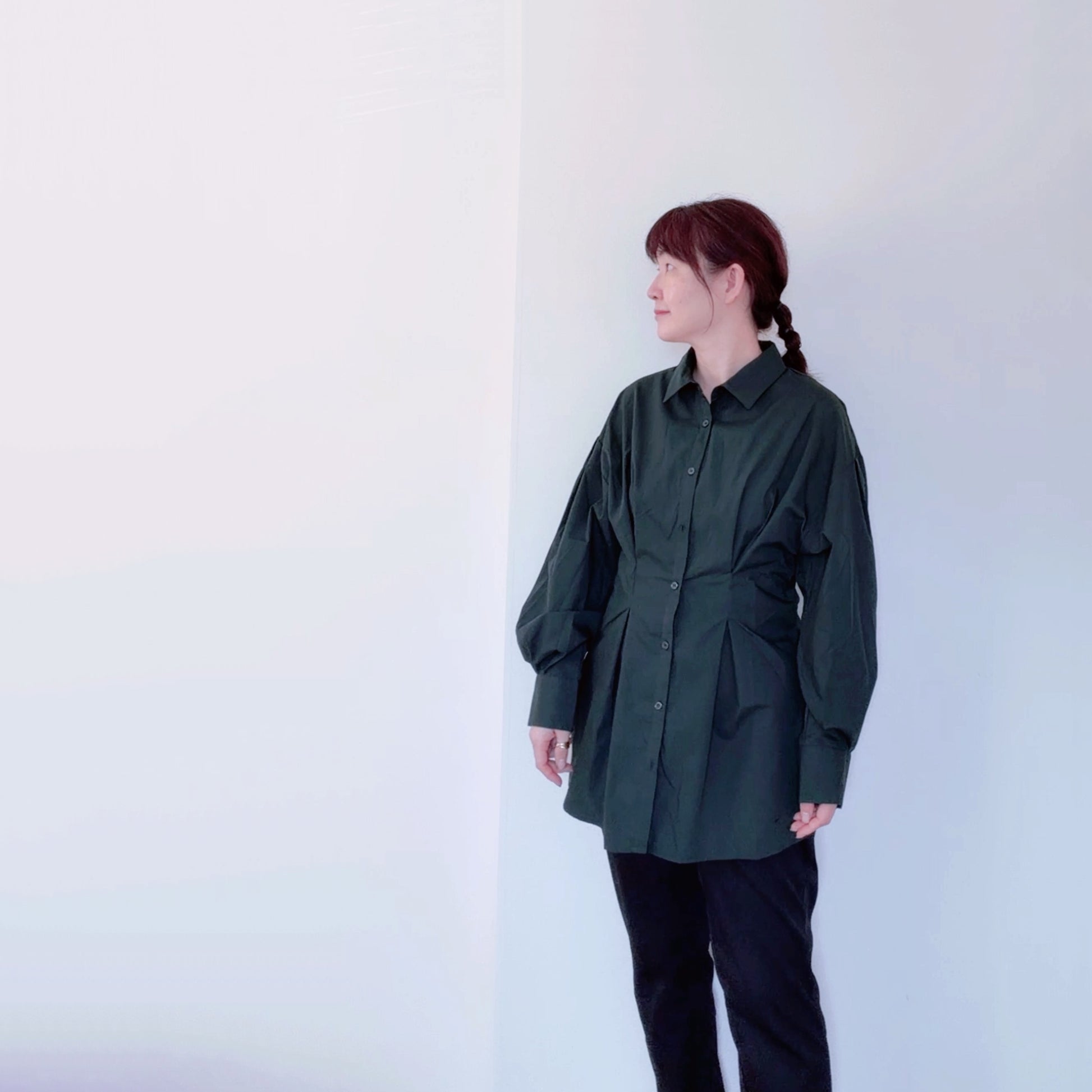 ウエストのタックがメリハリ作ってくれるポイントのシャツブラウスです。