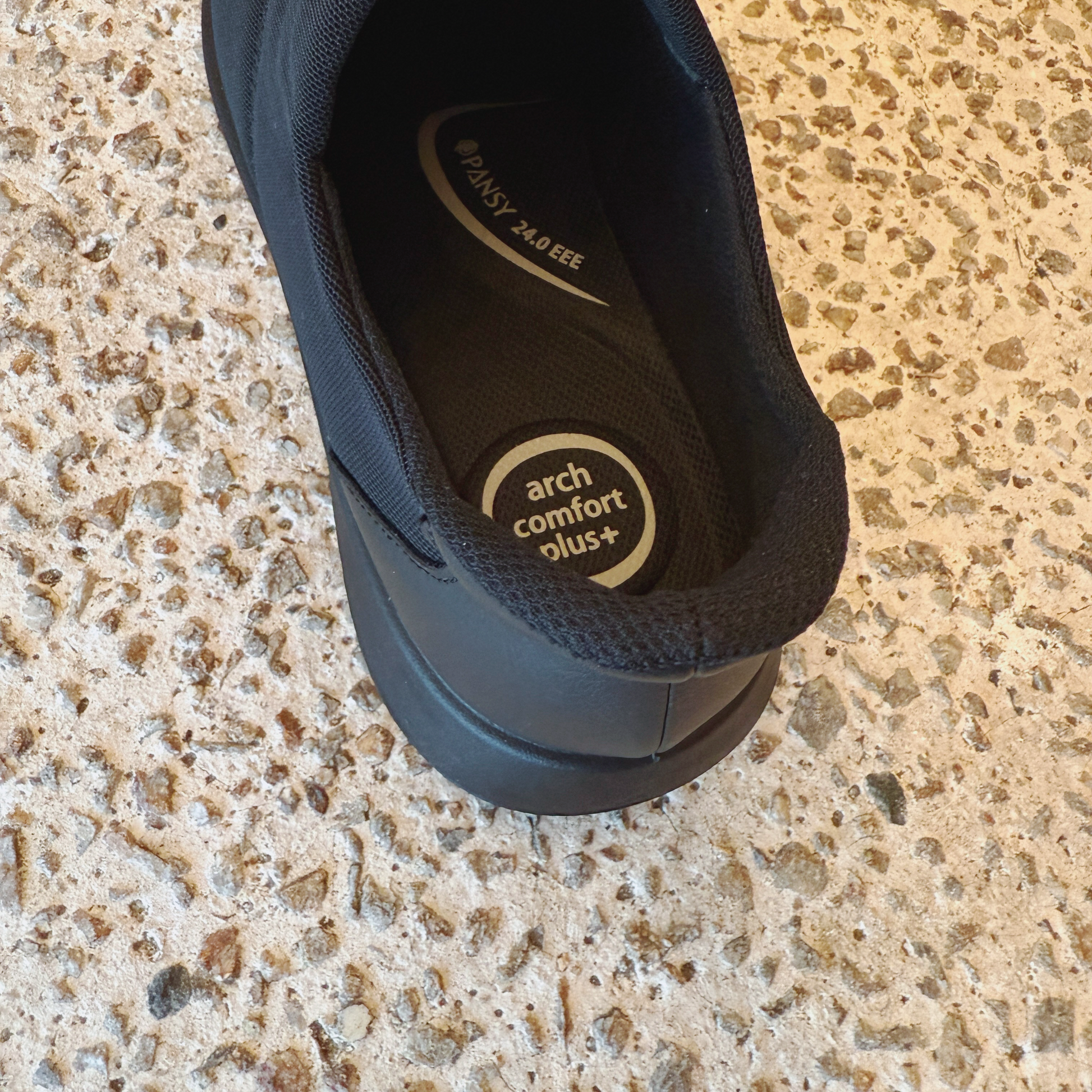 スリッポンタイプで、手を使わずに足を滑らすだけで履けちゃう設計。