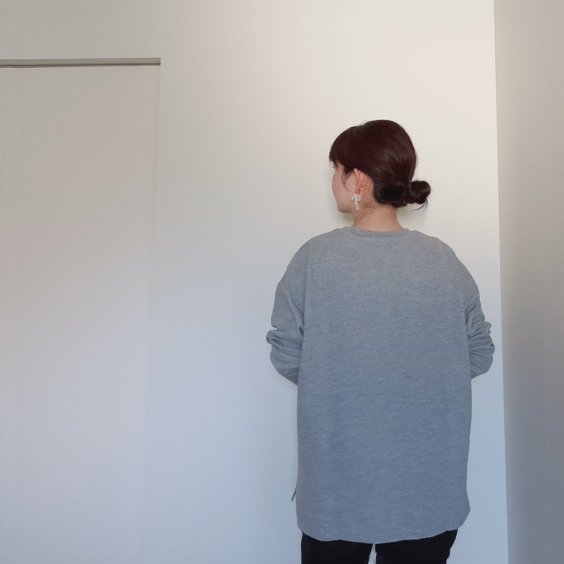 コーデセットにしたのは、割とワイドな身幅でリラックス感がありながら、すっきりとした袖でバランスよく着こなせるグレーのプルオーバー。