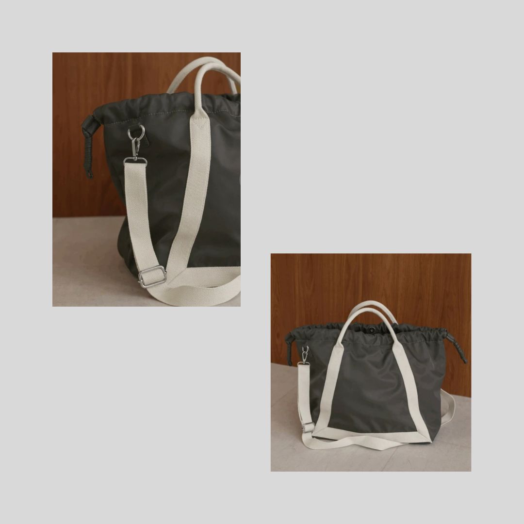 長さ調節可能な肩紐を取り付けることもできるので、ショルダーバッグとしても使えますー