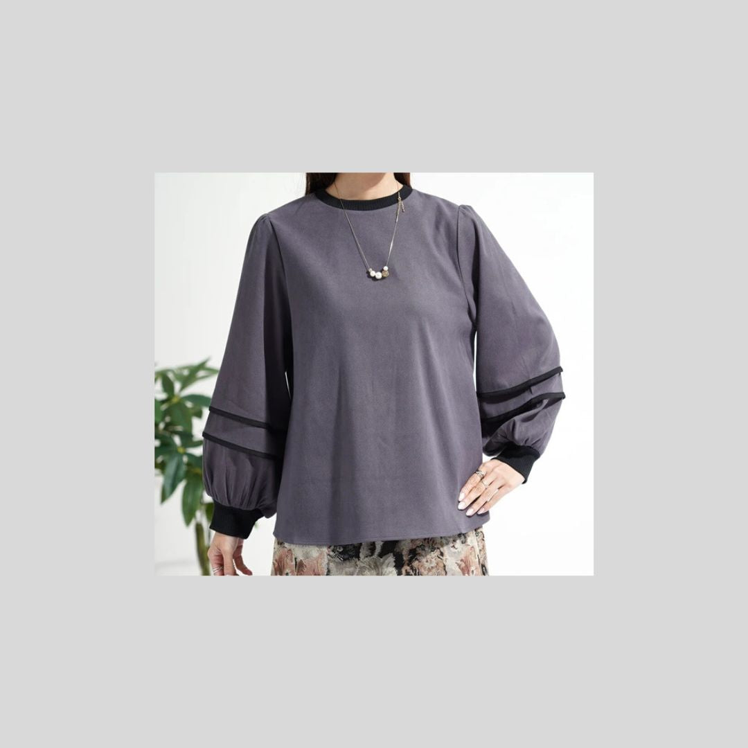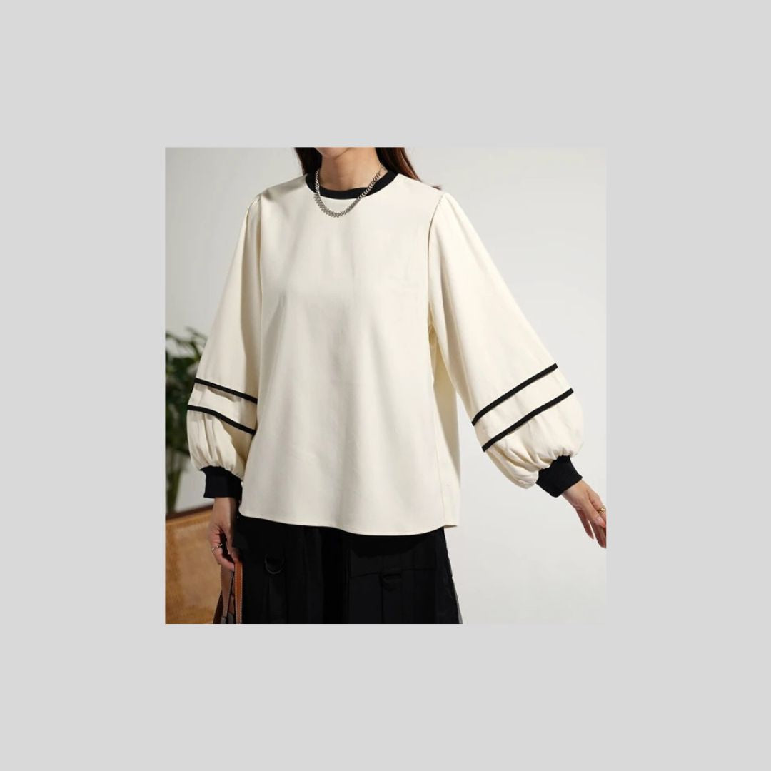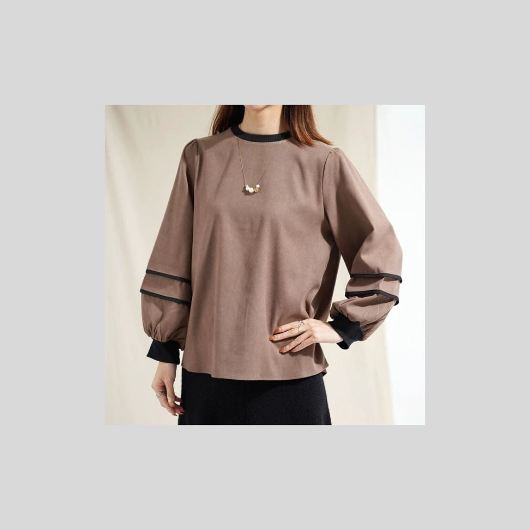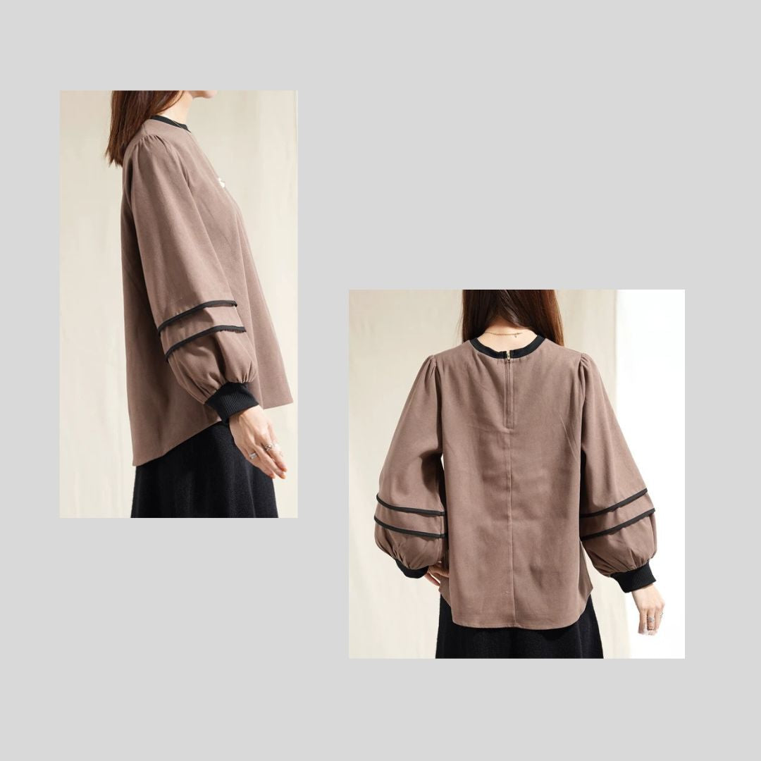 袖パイピングがかわいいブラウス