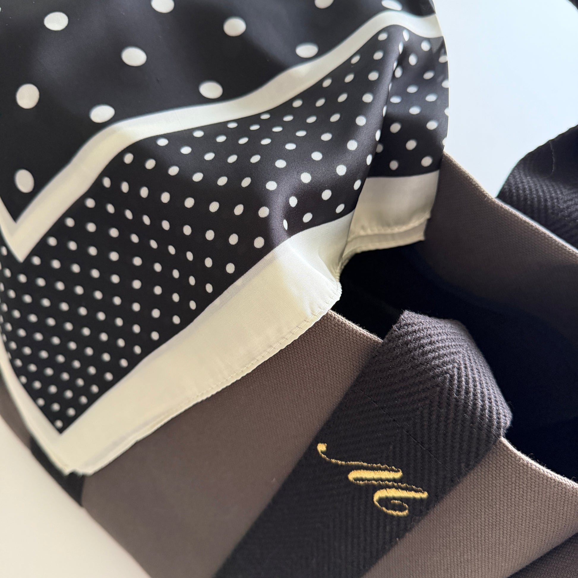 イニシャルなどアルファベット1文字を刺繍するとさらに素敵なので、オプションに。(+1000円)
