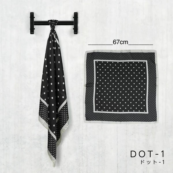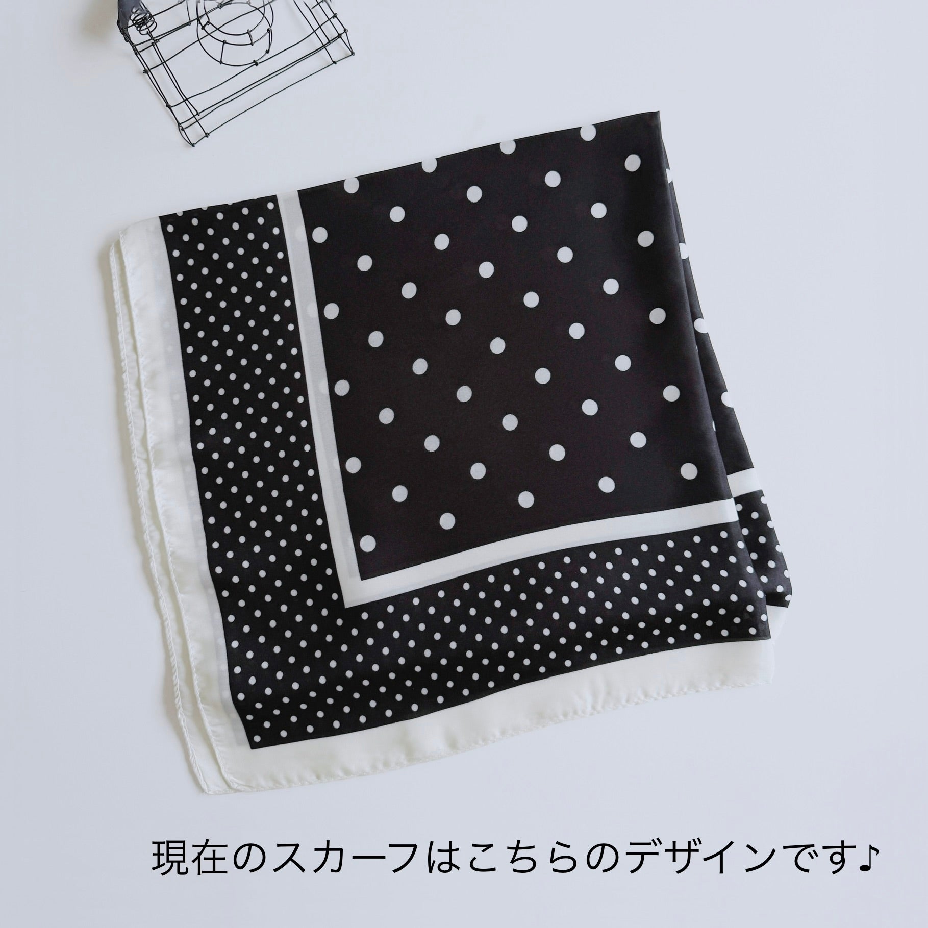 (スカーフ柄はいろいろ変化させていってて、現在は後ろのほうの写真にある、黒系のドットがかわいいバージョンになっております♪)