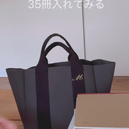 これまでもノート用バッグは探していたのですが、トートバッグの既存のサイズではなかなかノートを「横にしたまま積むように入れる」スタイルに合うものがなくて。